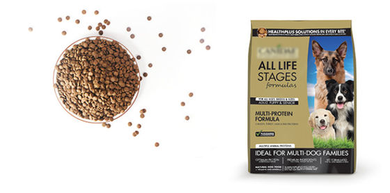 El animal doméstico automático raciona el bolso que hace, pesando, llenando y sellando la maquinaria de envasado
