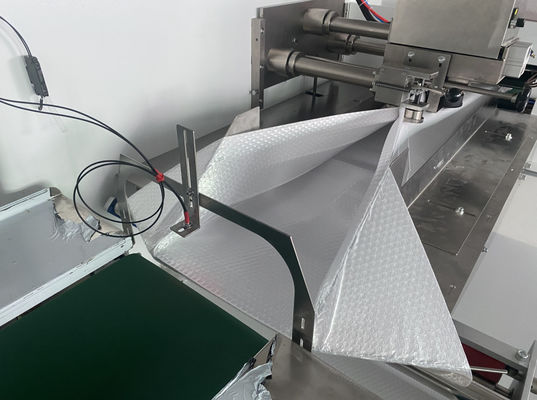 Cortar y sellar la película: La máquina saca la película del rollo y la corta en secciones de una longitud especificada.Estas secciones se sellan a lo largo de los bordes para crear cojines individuales o burbujas.